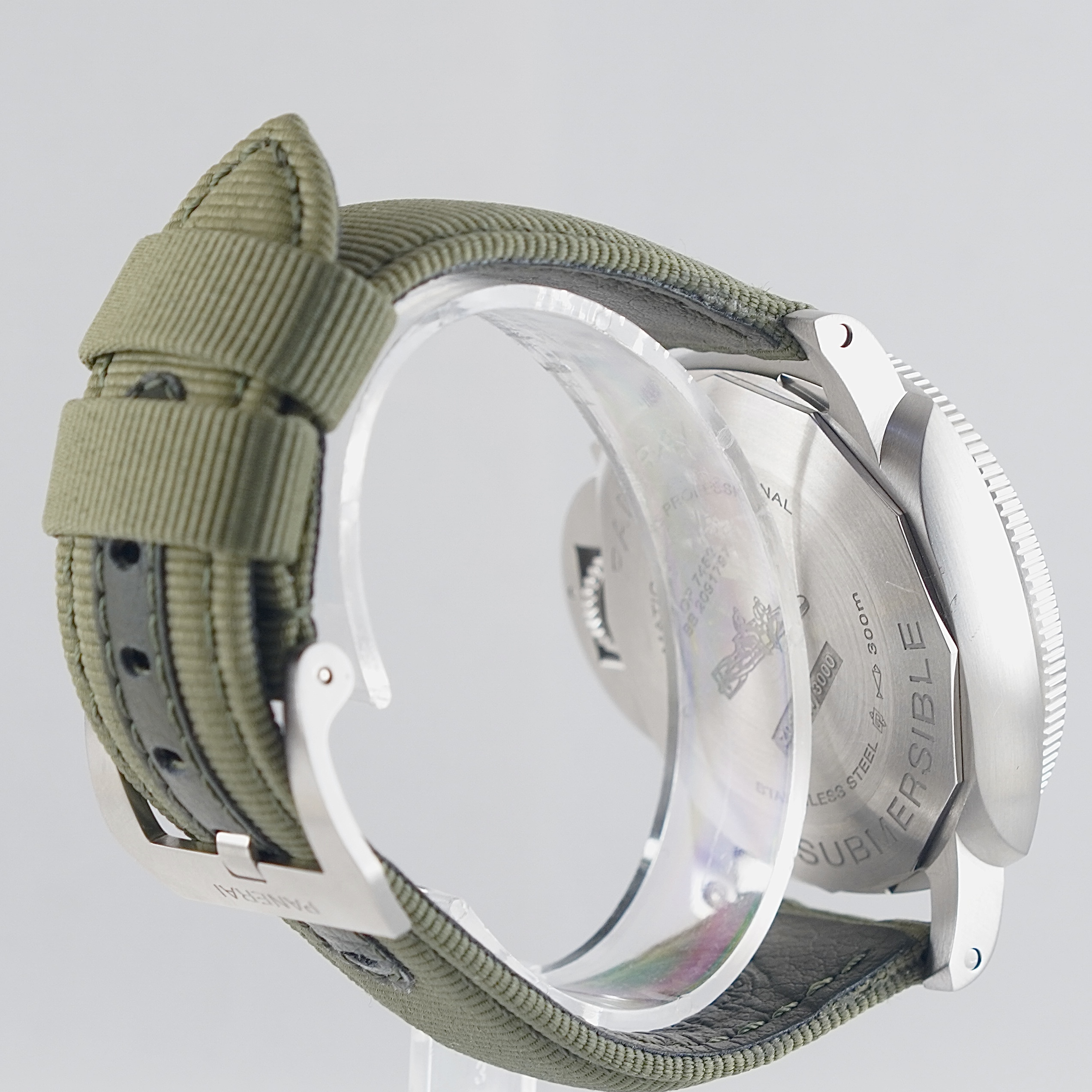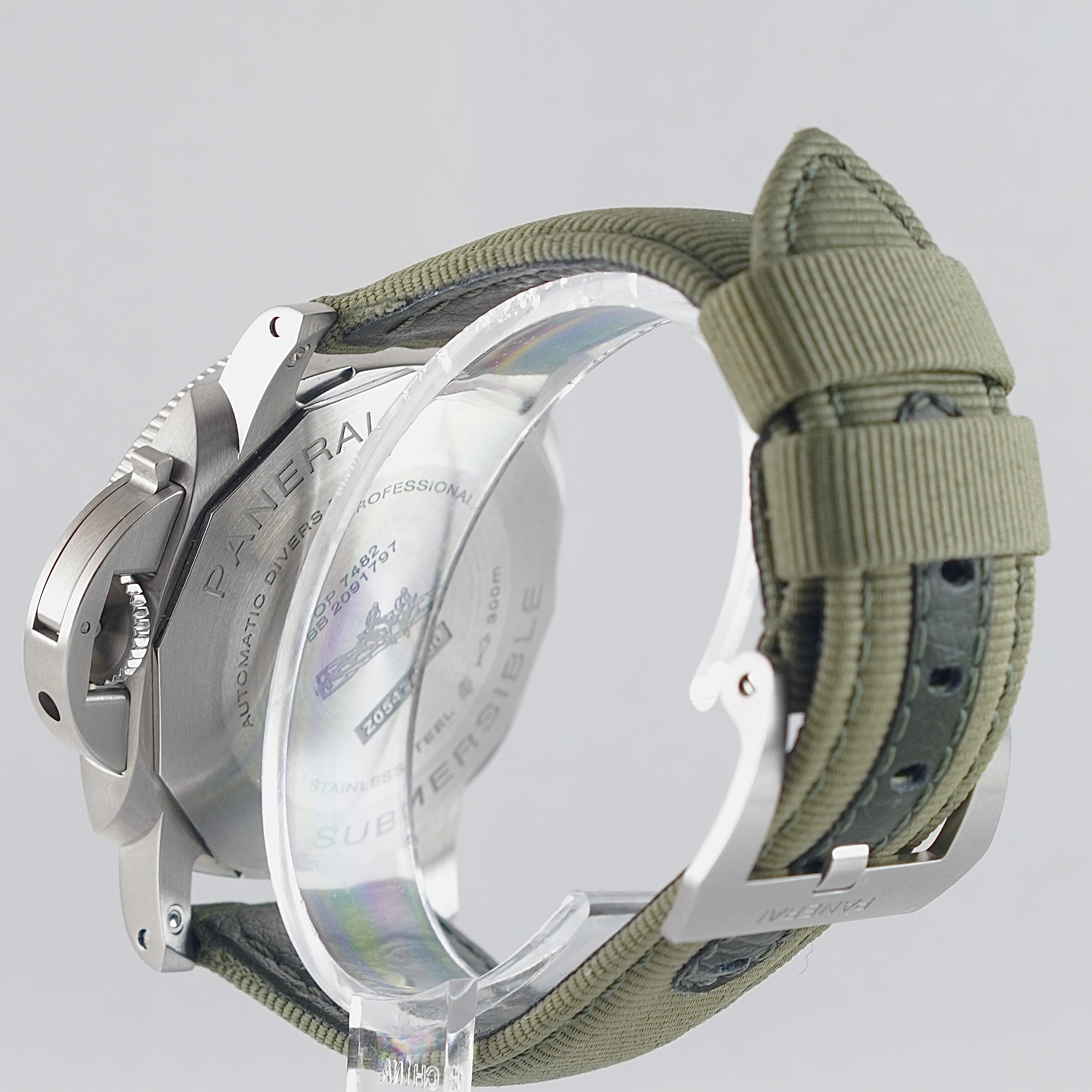 Harvoin tarjolla oleva ja hyvin siistikuntoinen PAM01226 alkuperäisillä oliivinvärisillä kumi- ja canvasrannekkeilla. Fullset, jonka takuupaperit päivätty 11/2025 suomalaisella jälleenmyyjällä. Valmistajan jatkotakuu voimassa 11/2033 asti. Mukana rannekkeenvaihtotyökalut. Safiirilasike, pikkusekuntinäyttö, vastapäivään kiertyvä kehä ja päivyri. Todella hienostunut kokonaisuus vaalean taulun kanssa.